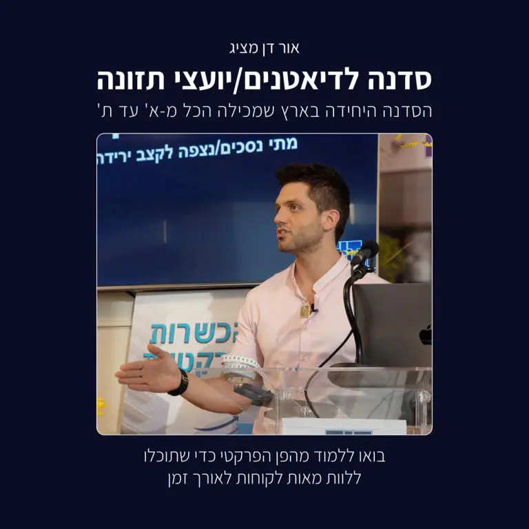 ניהול תזונה נכונה הוא המפתח לבריאות שלנו ולנראות שלנו ולכן יצרנו עבורכם את קורס התזונה המקיף...